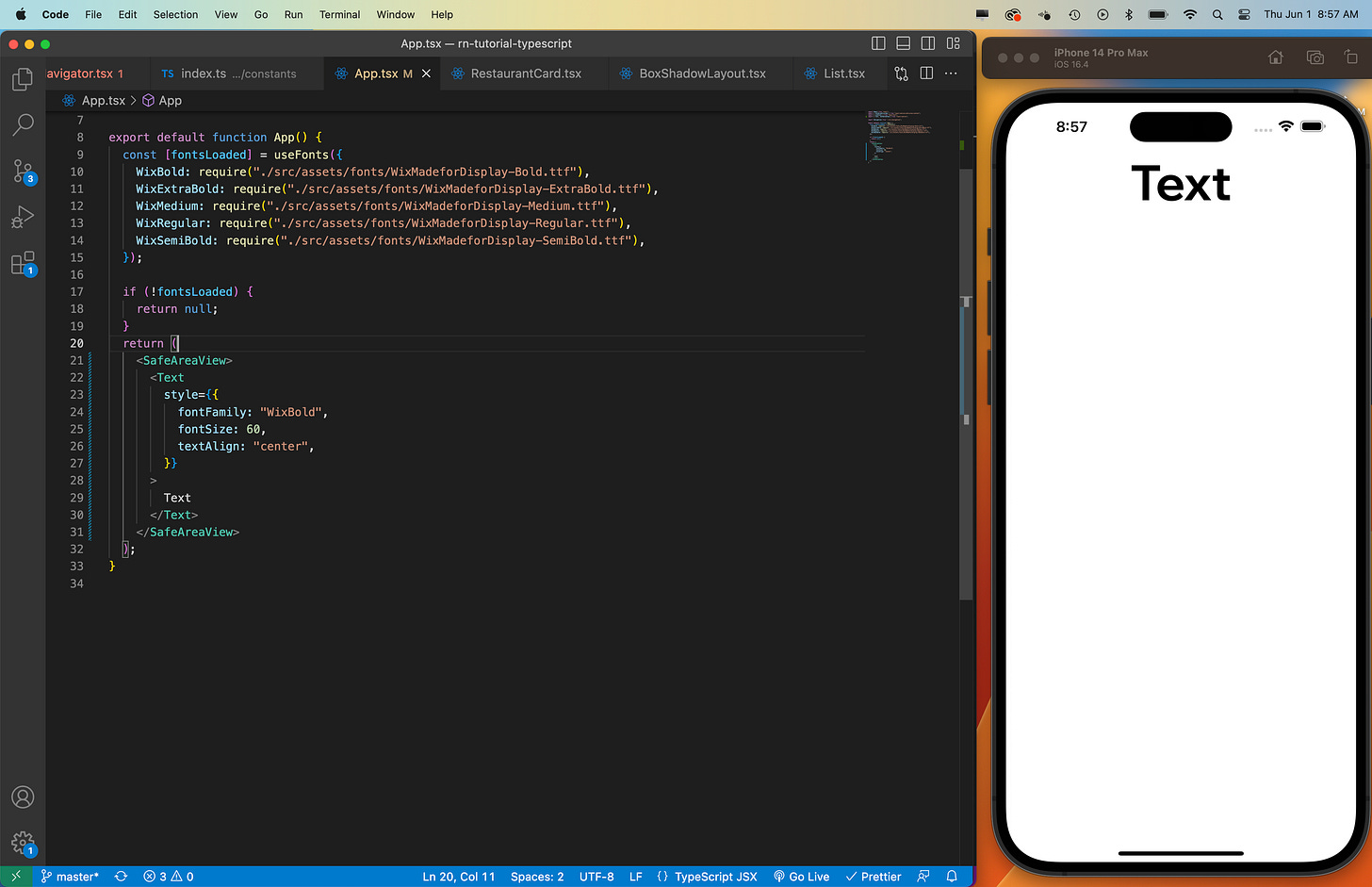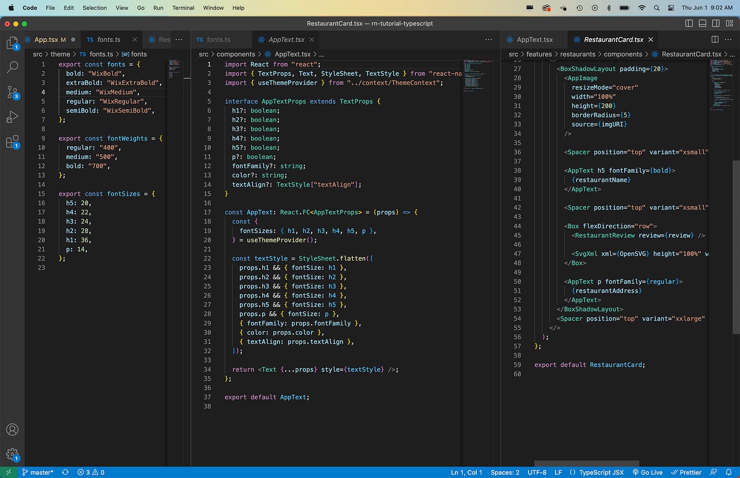 You might be wondering if you only have access to your custom fonts in App.js/ts. The answer to this question is no. Once the fonts are loaded, you can access them throughout your app. I’m currently using customs fonts with a theming system for a personal project I’m working on. 👇🏾
